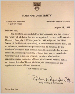 Letter of appointment to Harvard for Dr. Fox